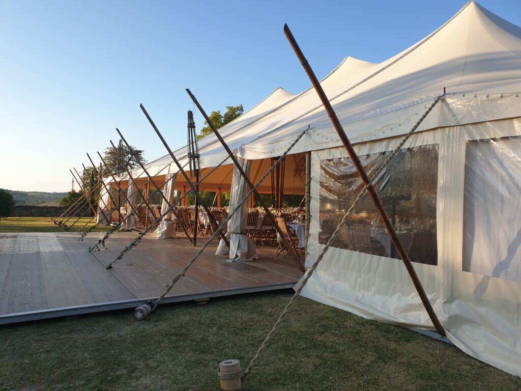 La structure Bambou est un produit exceptionnel, à la fois prestigieux et écologique. Conçue avec des mâts en bambou et recouverte d’une toile beige, elle offre un design original qui s’intègre parfaitement à l’environnement naturel de votre événement.